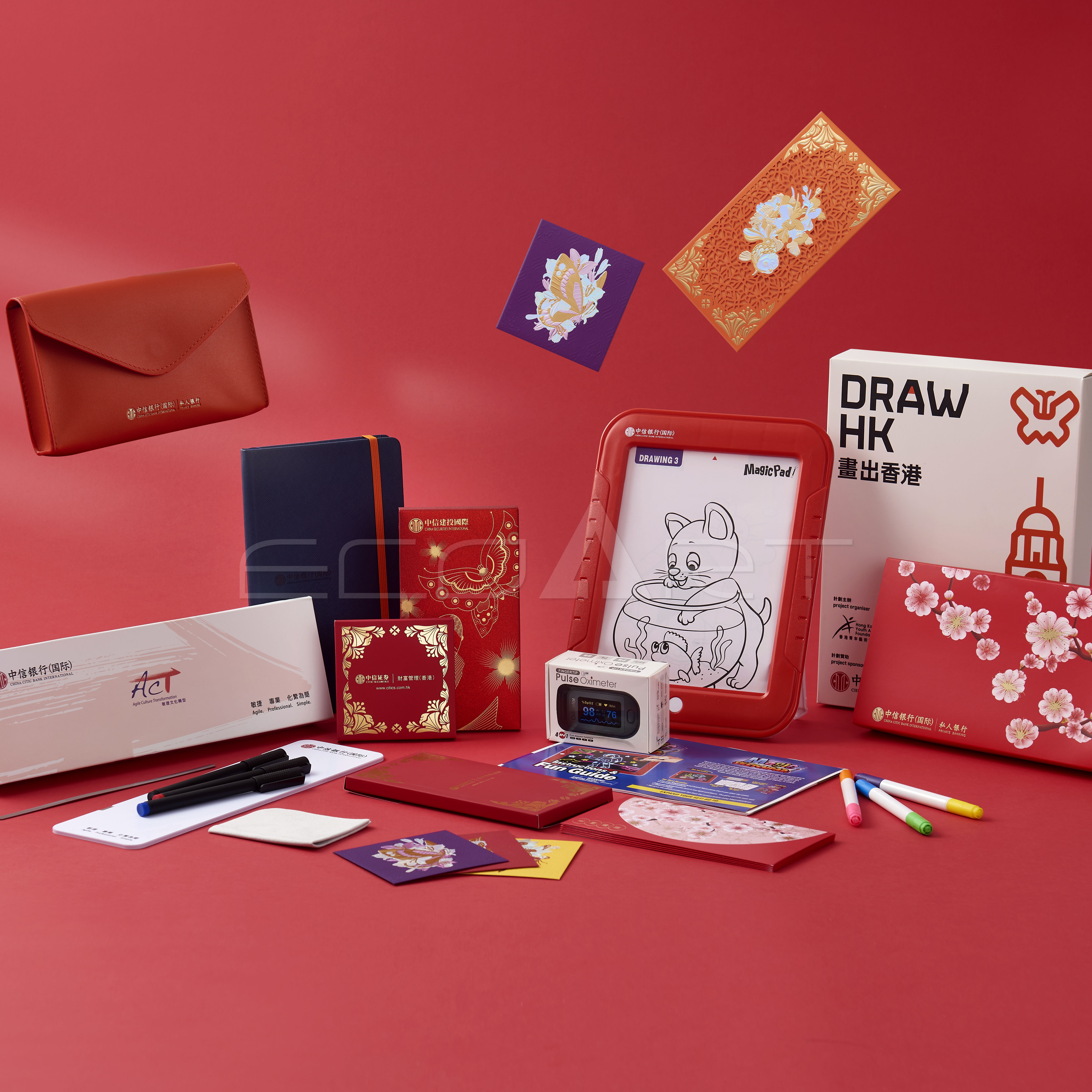 中信銀行(國際)套裝:白板套裝 利是封 筆記本 手指式血氧機 畫出香港套裝 巧控板 收納袋