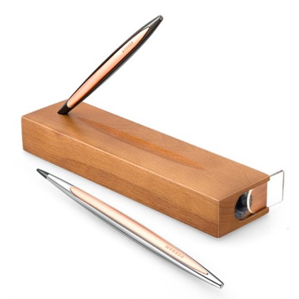 雙色金屬筆身 優雅弧線設計 特殊合金筆頭 歐洲櫸木筆座