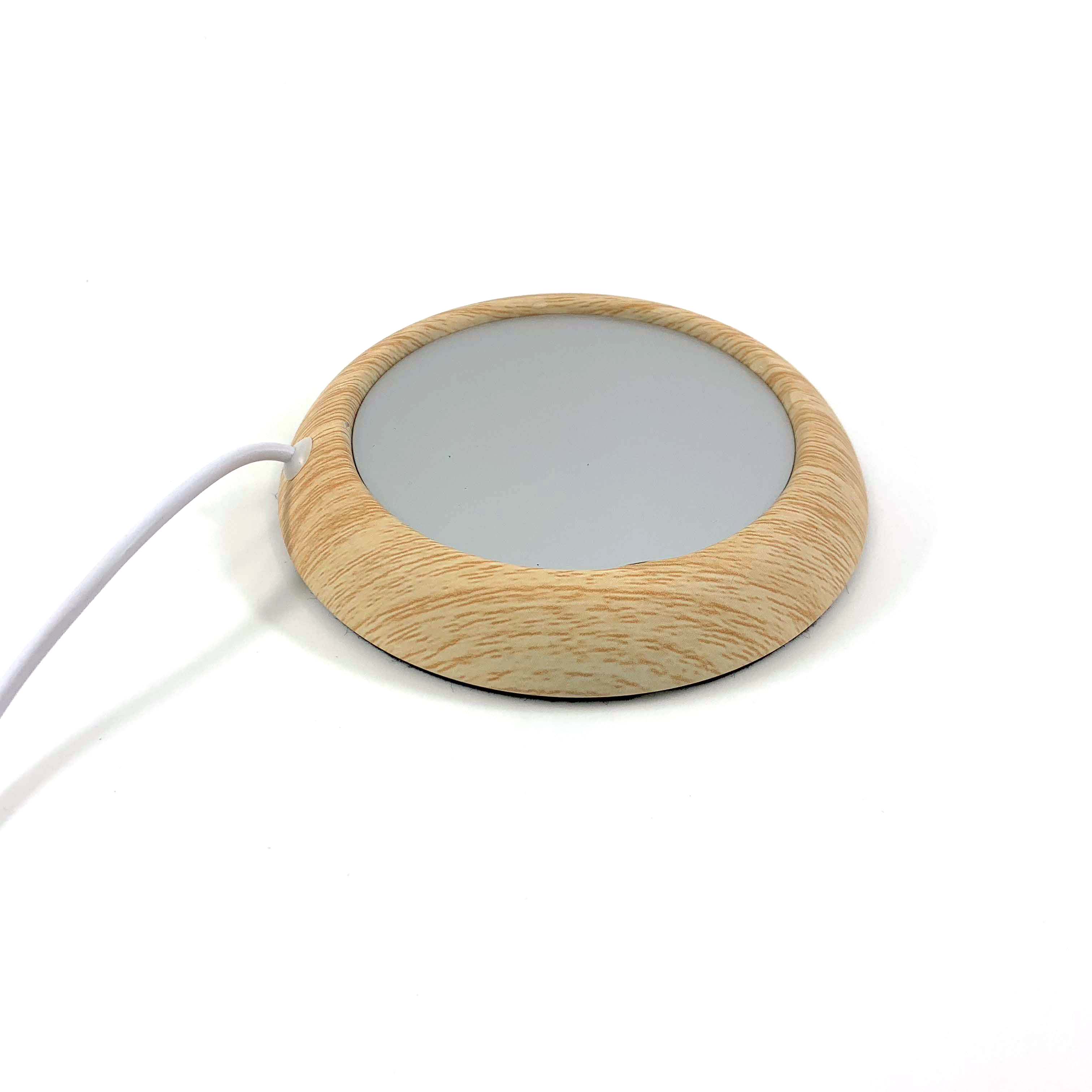 產品名稱: USB木紋杯墊 材質: 鐵殼+鋁板 產品規格: D103xH16mm 顏色: 深/淺木紋/大理石 功 率: 5W 電壓: 5V 電流: 1000mA 供電方式: USB 產品單重: 87g
