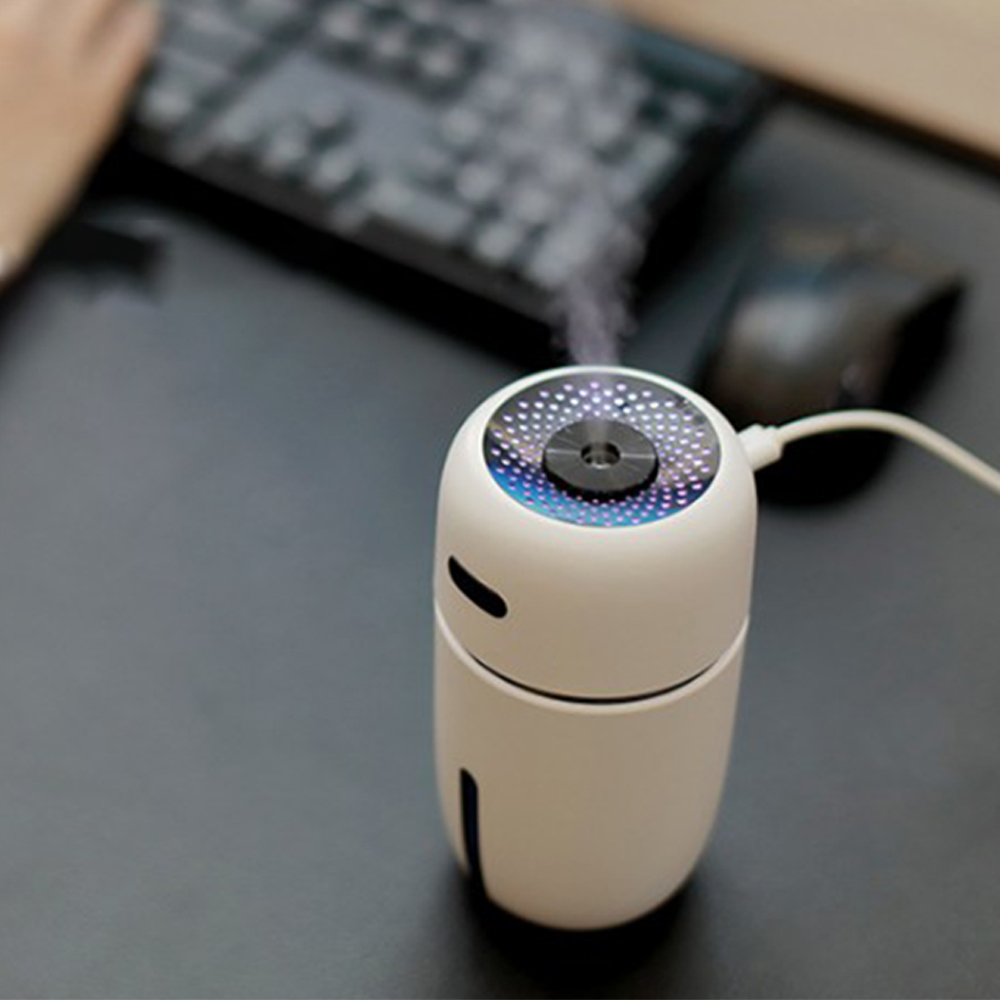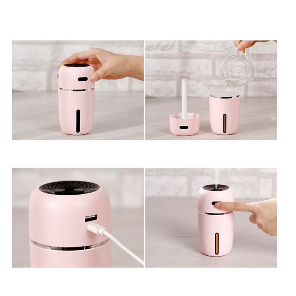 產品名稱:小 i 加濕器 工作電流 500 mA 使用功率:2.5W 噴霧量:35mt/h 材質:ABS/pp 顏色:白色/粉色/黑色/藍色 水杯容量:200mL 戶品尺寸:72*72*133.5mm 定時時間:一檔4小時、二檔9小時 拒絕乾燥,你的加濕小搭檔 辦公輕鬆加濕,讓忙碌中的你不仔忙亂 四步簡單操作 1、逆時針旋轉擰開上蓋 2、加入自來水 3、接上USB電源 4、單按開關開啟噴霧模式